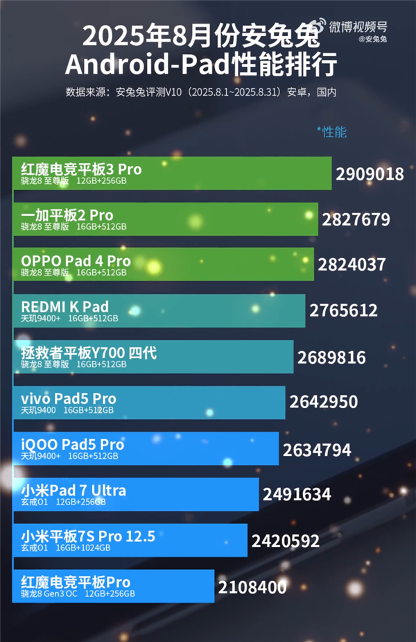 快科技9月4日消息股票配资怎么赚钱,安兔兔最新发布了8月份安卓平板性能排行榜,红魔电竞平板3 Pro凭借骁龙8至尊版+主动散热拿下了第一,跑分高达2909018分。